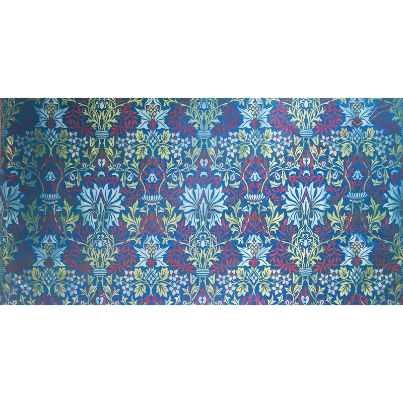Linda Parry William Morris Textiles Crescent, page 152 plate 31 for another colour way of this design. This silk was designed by William Morris in 1879 for the collection of Laurence William Hodson (1846-1933) to refurbish Compton Hall between 1895-6.