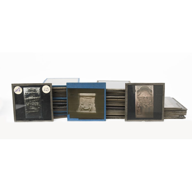 A collection of fifty-nine glass negatives depicting work by George Tinworth, the majority