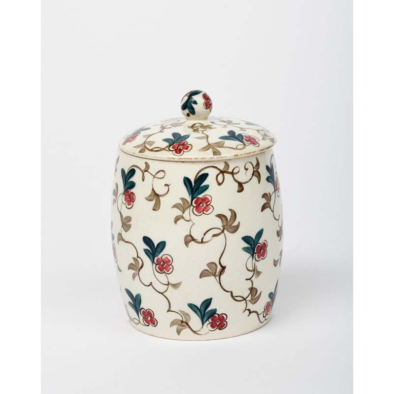 A Wedgwood pot and cover by Alfred Powell, swollen cylindrical form, painted with flower stems in