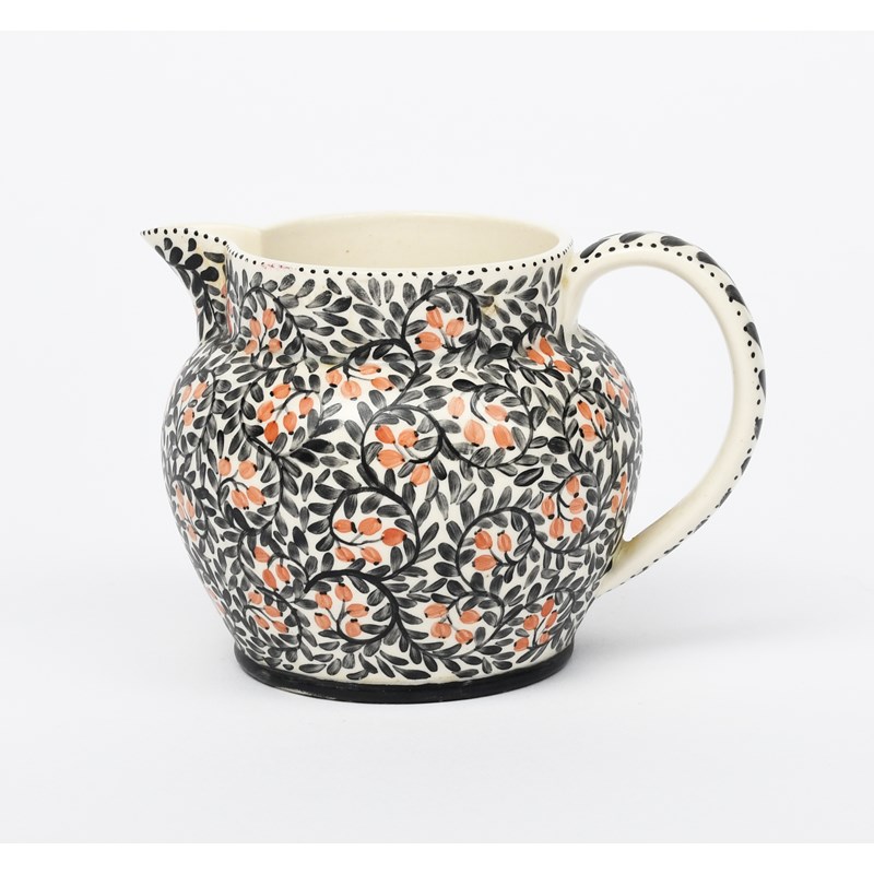 A Wedgwood milk-jug by Grace Barnsley, ovoid, painted with berried, scrolling foliage in red and