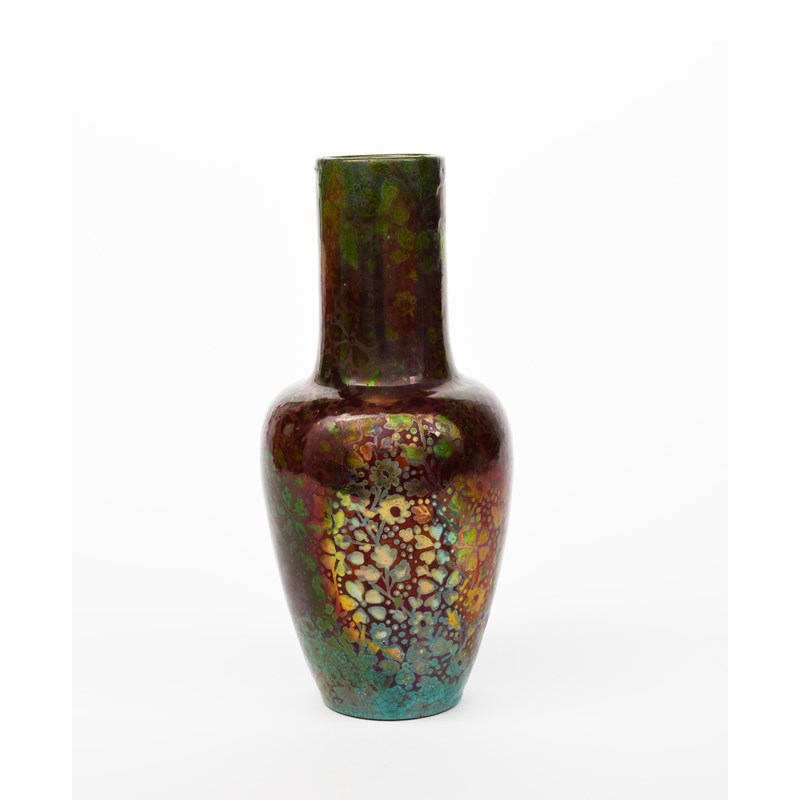An Art Nouveau Clement Massier vase, shouldered form with cylindrical neck, painted with flowers and