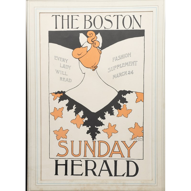 colour lithograph on paper from the 1894 calendar, and 'The Boston Sunday Herald' by Ethal Reed, 1894, both framed