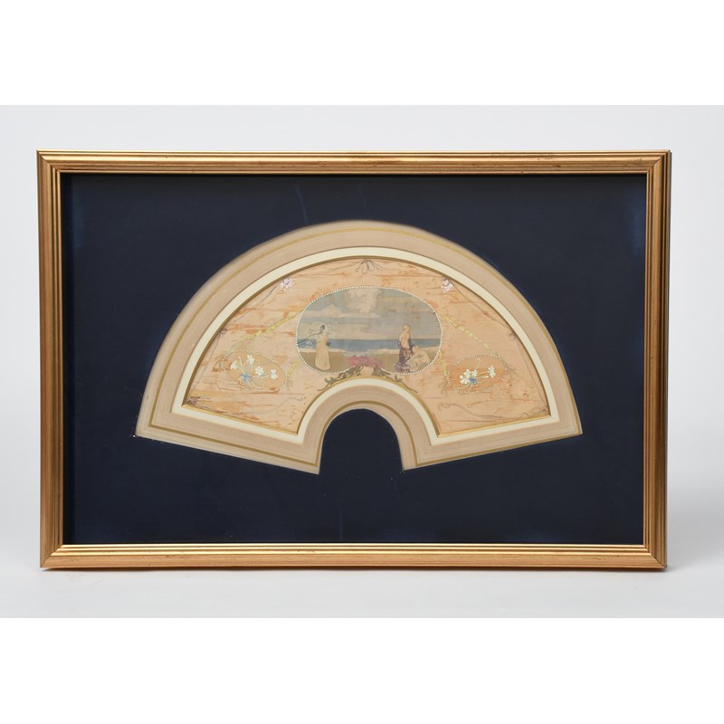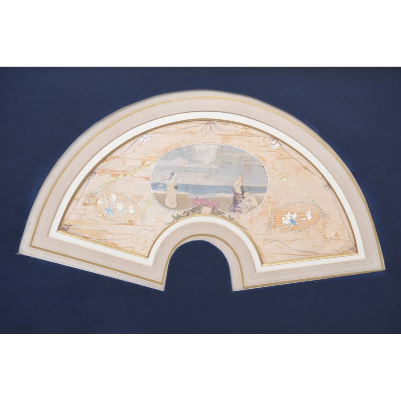 design for a silk fan, painted silk, framed