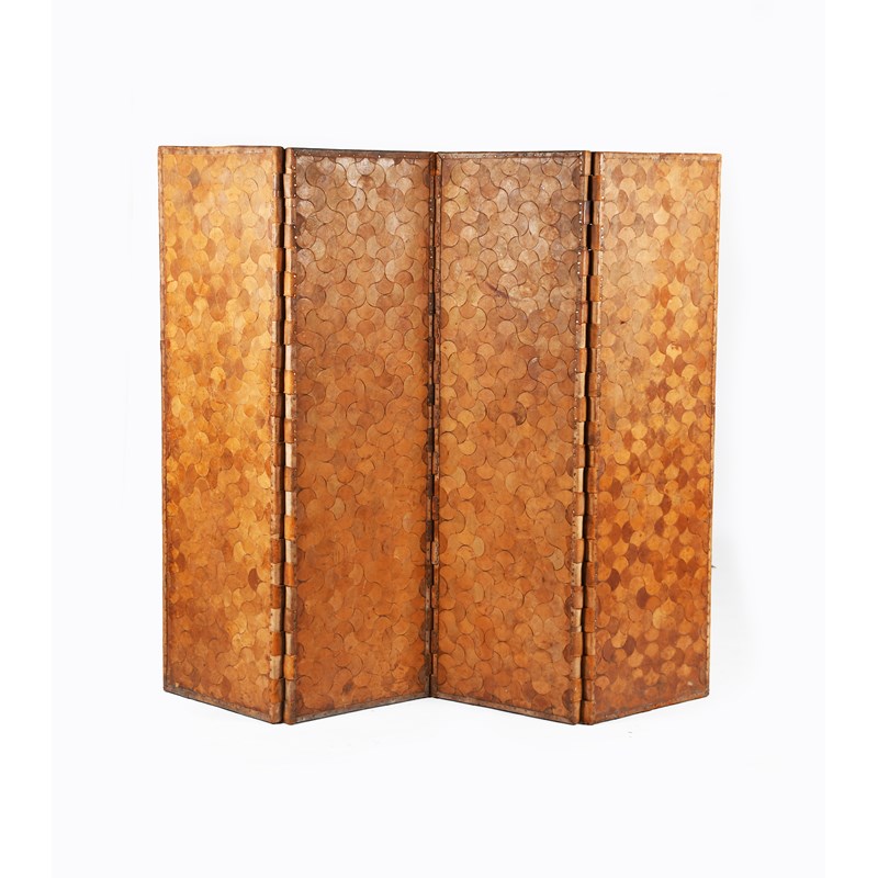 An unusual four-fold leather screen, unsigned, 46 x 152cm (each panel)
