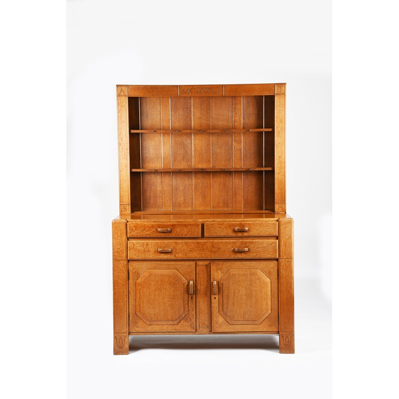 A Heal's oak dresser designed by Ambrose Heal, made as a wedding present for his son Anthony in