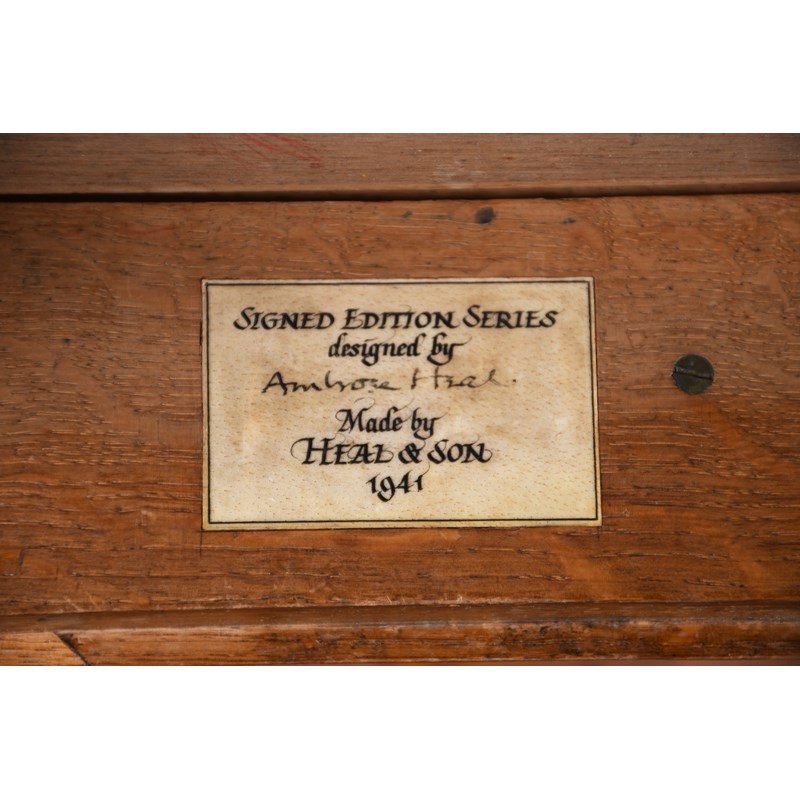 Oliver S Heal, Sir Ambrose Heal and the Heal Cabinet Factory 1897-1939, page 234 this cabinet illustrated. This and the en suite gate-leg table are the last domestic furniture designs by Ambrose Heal.