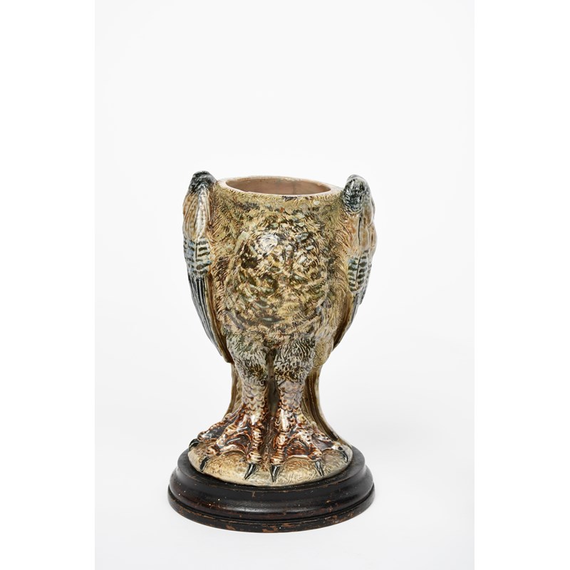 A Martin Brothers stoneware bird jar by Robert Wallace Martin, modelled standing with webbed claw