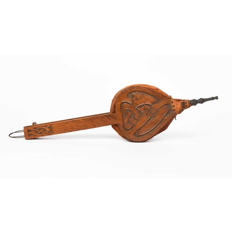 A pair of Liberty & Co Otley oak fire bellow designed by Archibald Knox, carved with Celtic knot