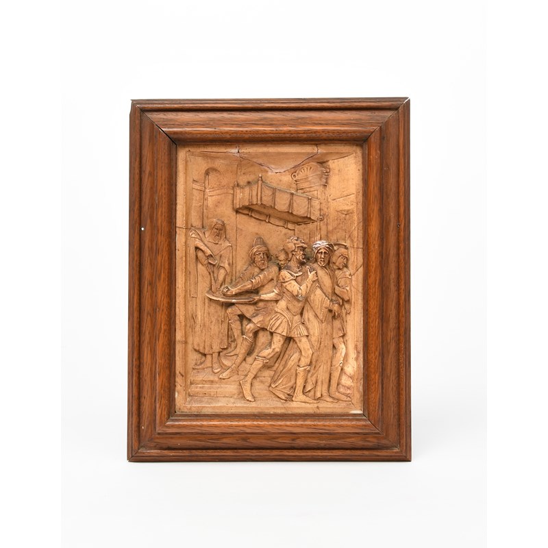 Weingartner was born in Switzerland and came to Britain working both with Walter Gilbert at the Bromsgrove Guild and also with Joseph Hodel. This piece was possibly made at the Bromsgrove Guild's plaster works where he worked from 1902-1921.