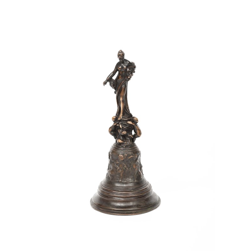 the figure appears to have lost a drape which should be in her right hand, otherwise some light dents, wear to patination.