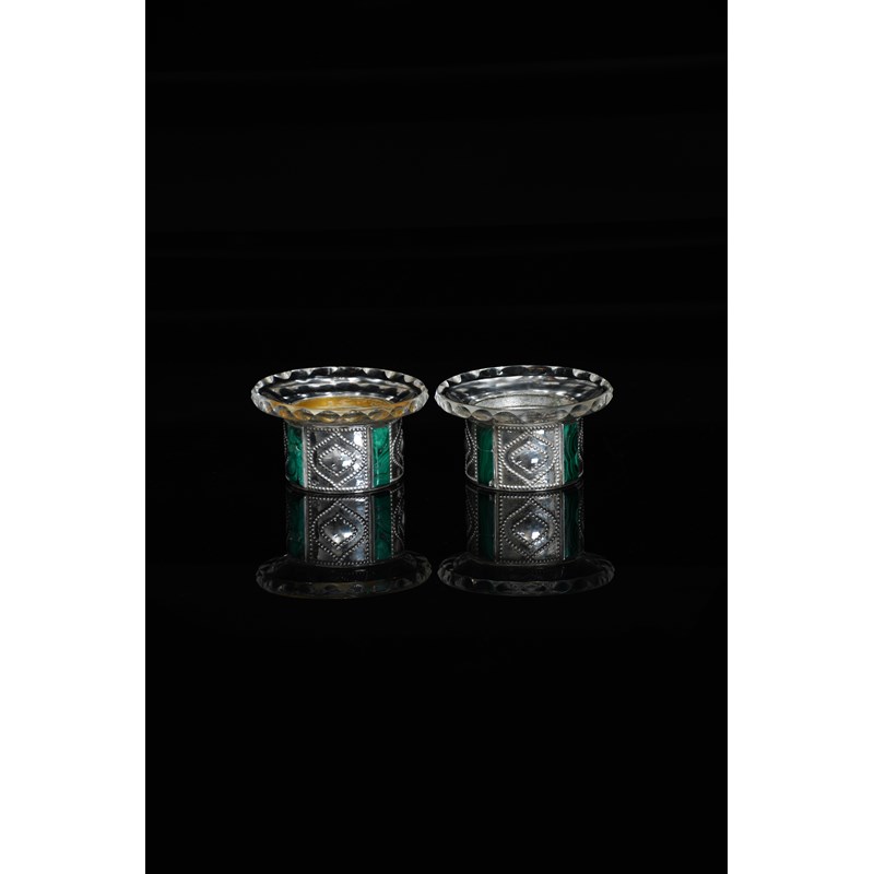 A pair of Viennese silver and malachite table salts designed by Josef Hoffmann for Palais Stoclet