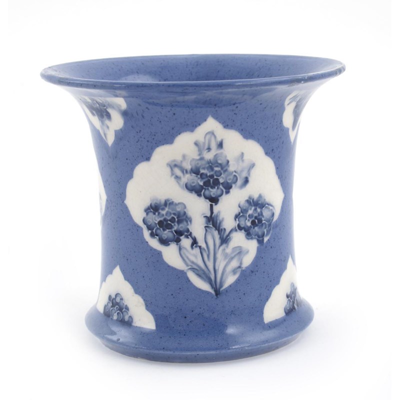 'Floral Panel' a Moorcroft Pottery vase, designed by William Moorcroft, flaring cylindrical form, painted in blue on a powder blue ground impressed marks, painted blue signature 10.5cm. high