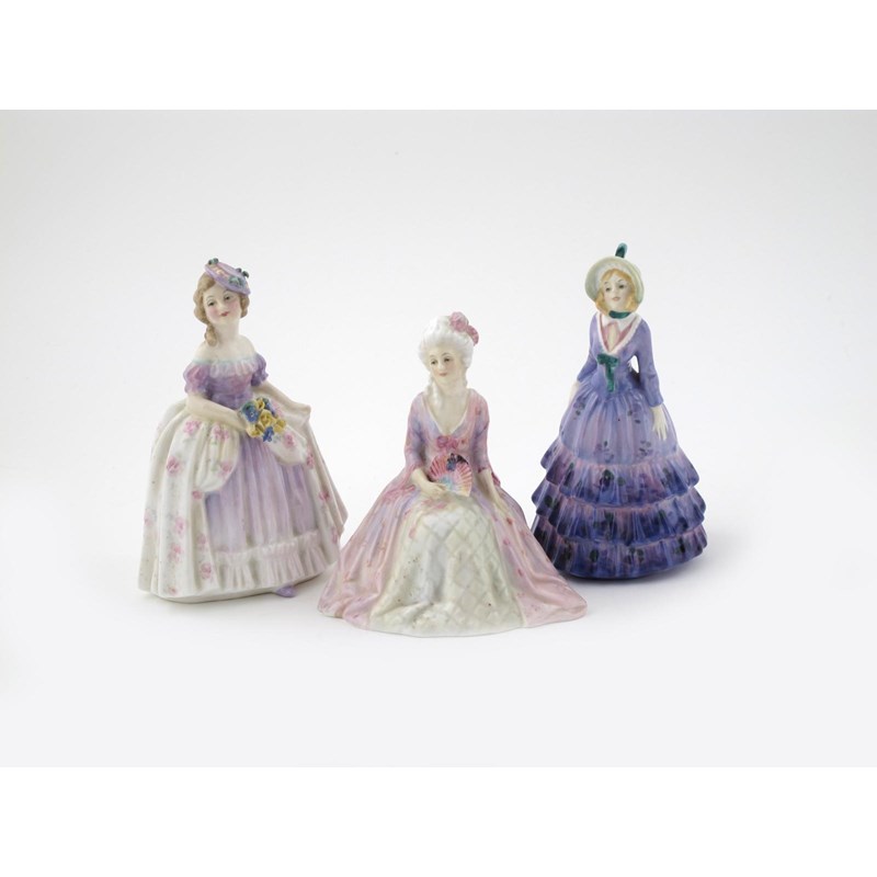 'Eugene' HN1520, 'Pauleen' HN1444 and 'Dainty May' HN1656, three Royal Doulton figures, painted in colours printed and painted marks, Dainty May restored