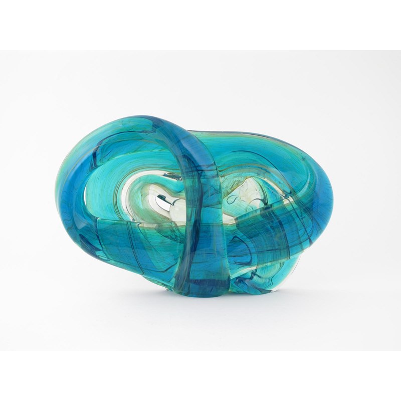 A rare Mdina glass sculpture by Michael Harris, blue and green striated glass cased in clear etched Michael Harris Mdina, minor frits 30cm. wide