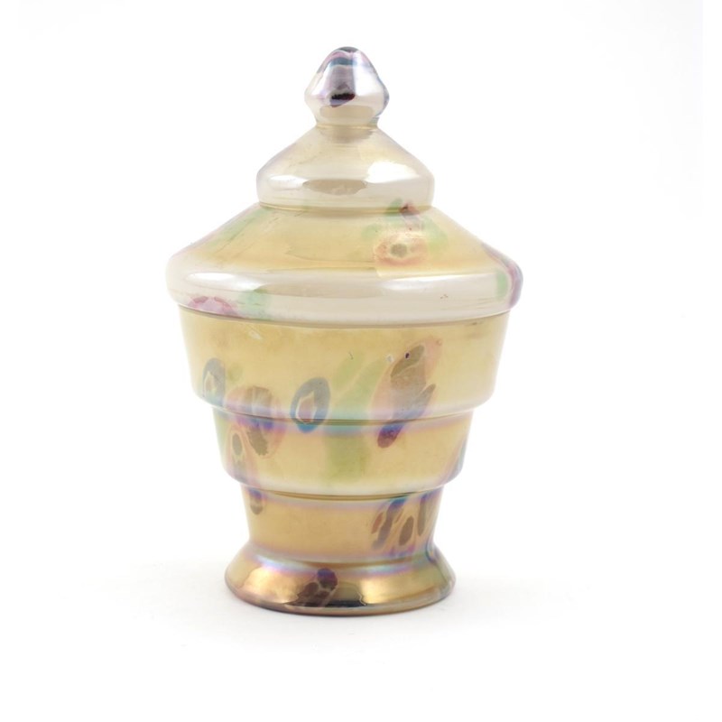 A Kralik glass vase and cover, ribbed, flaring cylindrical form  covered in a lustrous finish unsigned 20cm. high