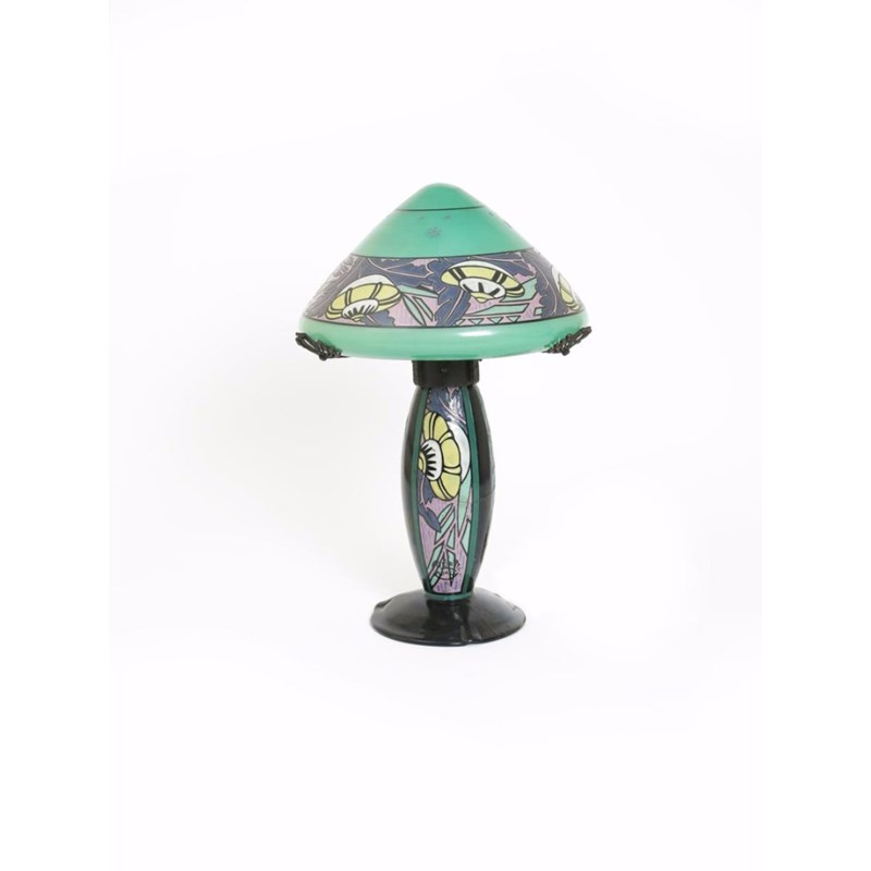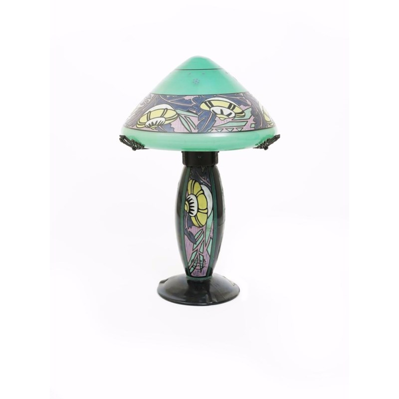 A De Latte enamelled glass table lamp and shade