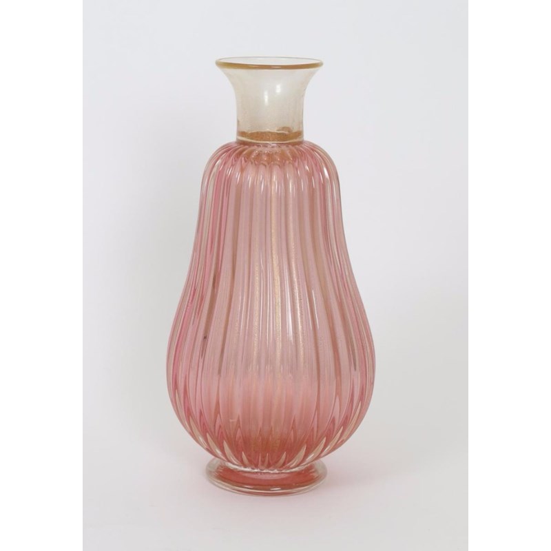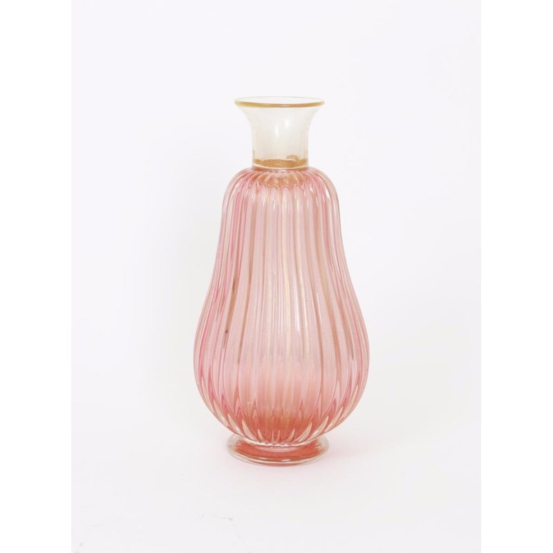 An Archimede Seguso glass vase, ribbed, shouldered pale pink glass with gold aventurine inclusions, on applied foot, and two modern I Quadernio di Archimede Seguso catalogues, (no.2 and No.12) etched Archimede Seguso Murano 43cm. high (3)