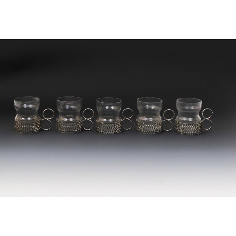 A set of eight Tsaikka metal mounted glasses designed by Timo Sarpaneva