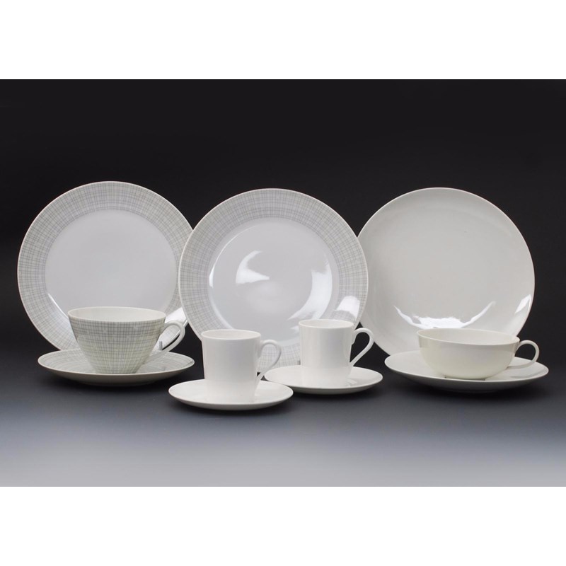 A Bing & Grondahl tea and coffee service designed by Stig Lindberg, comprising four cups, saucers and side plates, and thirteen coffee cups and saucers, and an Arzberg part tea set designed by Heinrich Loffelhardt and a collection of tableware including Bing & Grondahl designed by Henning Koppel, a Lyngby part service designed by Axel Bruel, and An Arabia porcelain Rice service designed by Elfride Holzer-Kjellberg, comprising; five graduated bowls and six various saucers printed marks, (a lot)