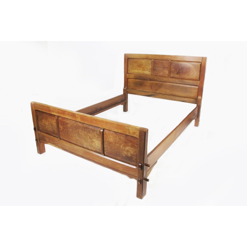 A Stanley Webb Davis walnut double bed dated 1935, with pegged joints incised cartouche date to bed head, 208 x 148cm.