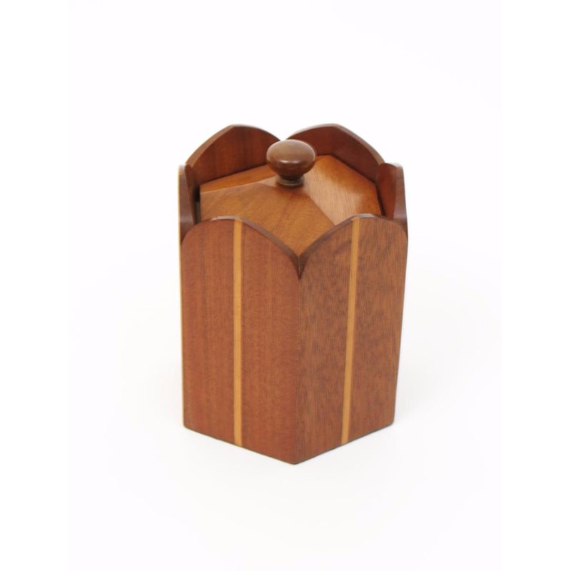 A Cotswold School walnut caddy and cover the design attributed to Hugh Birkett, hexagonal section the caddy formed as a rounded crown, cedar lined unsigned 13.5cm. high