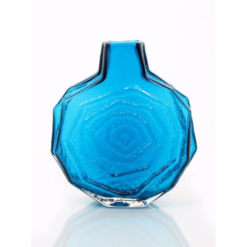 A Whitefriars Kingfisher Blue glass Banjo vase designed by Geoffrey Baxter