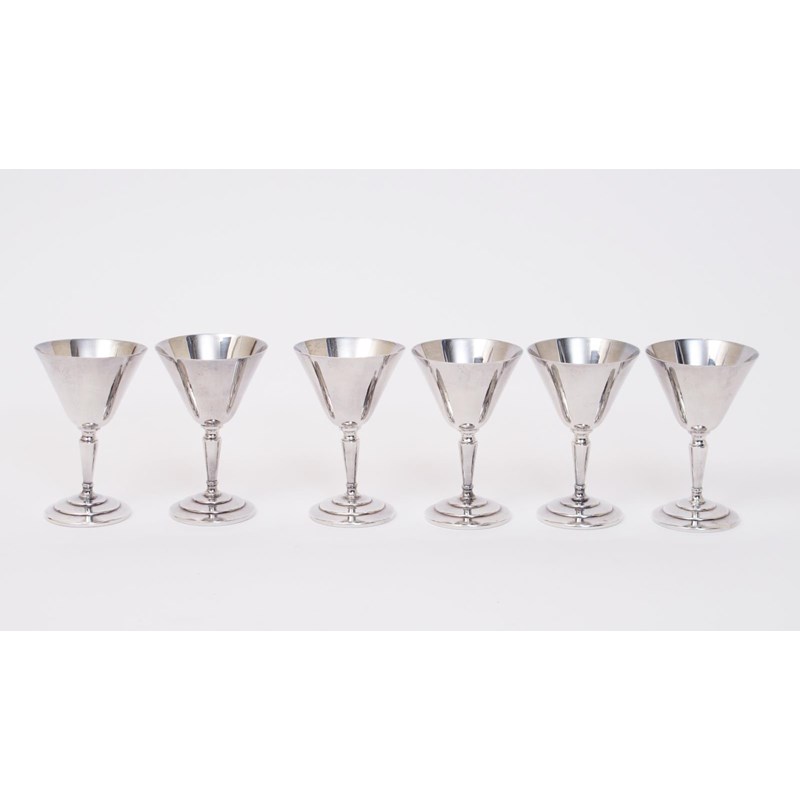 A set of six Mappin & Webb electroplated cocktail glasses designed by Keith Murray