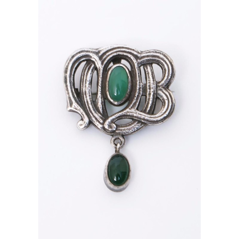 An unusual silver pendant probably Murrle Bennett, the frame cast and pierced to form MB monogram for Murrle Bennett, set with two green chrysoprase stones unmarked, 4.5cm. long