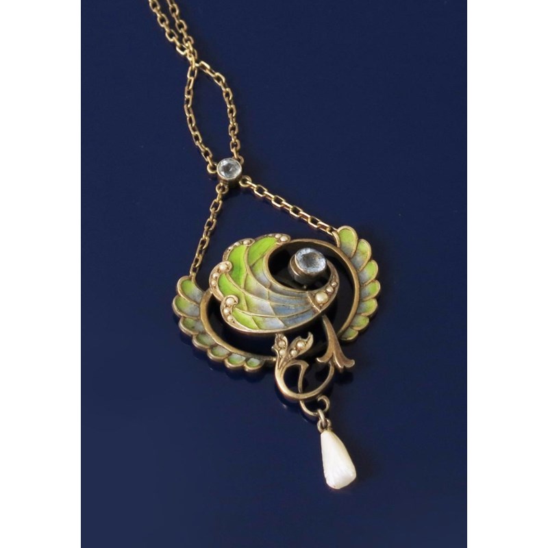 An Art Nouveau silver and plique a jour enamel pendant necklace by Carl Herman