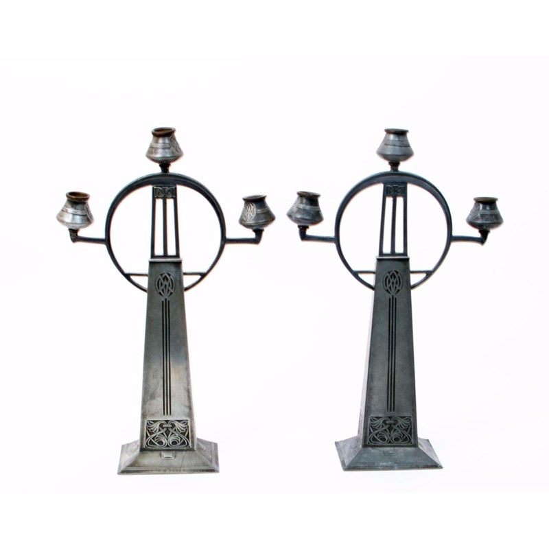 A pair of continental three branch Secessionist candelabra possibly W.M.F