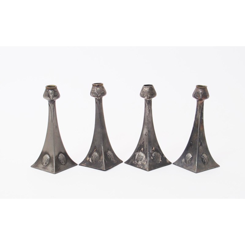 Four W.M.F Secessionist candlesticks designed by Albin Muller