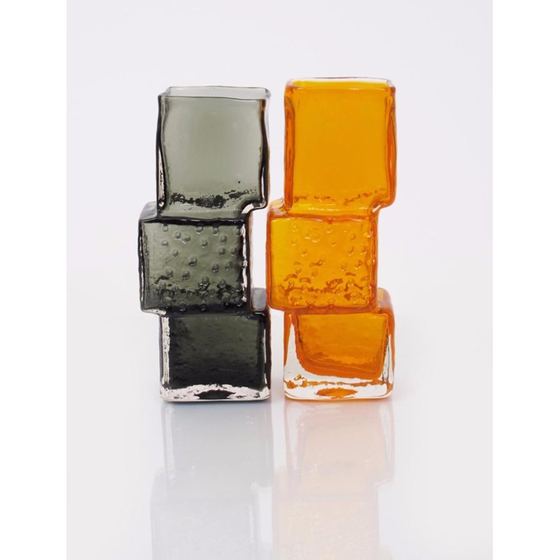 A Whitefriars Tangerine glass Drunken Bricklayer vase designed by Geoffrey Baxter