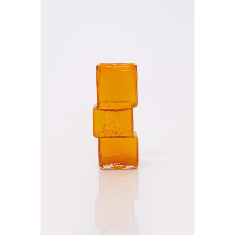 A Whitefriars Tangerine glass Drunken Bricklayer vase designed by Geoffrey Baxter