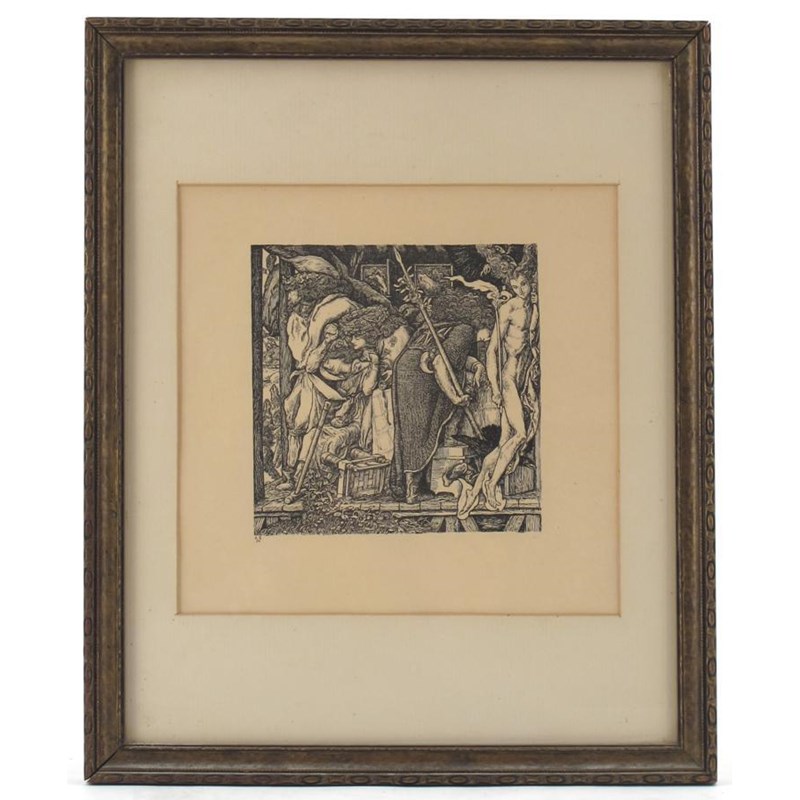 'Wotan and Logi in Search of the Reingold' a photogravure after a pen drawing by Reginald Savage, published in The Dial no.IV 1896, framed RS monogram and 94 in the print image 14.5cm. square