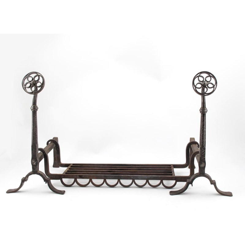 A wrought iron fire grate, with pierced flower stem terminals unsigned 47cm. high