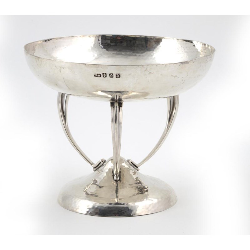A James Weir silver pedestal bowl, domed foot with tripod stem supporting hammered bowl, stamped marks 1907 16cm. high