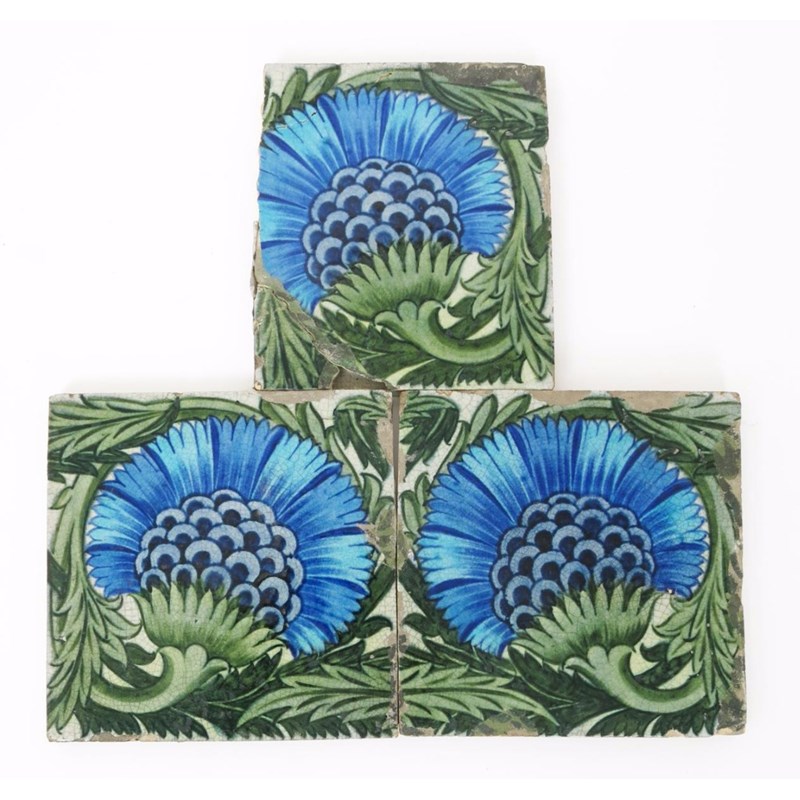 Three William De Morgan Chelsea Period BBB large 8 inch tiles