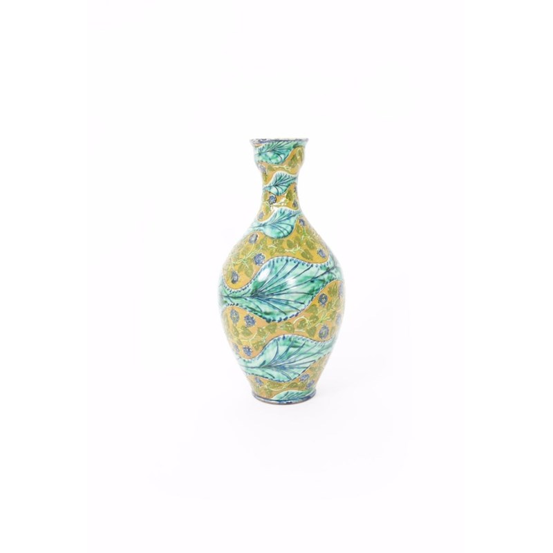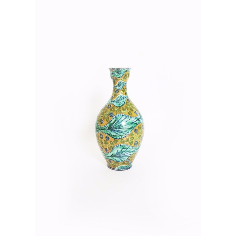 A Della Robbia Pottery vase by Hannah Jones, ovoid form with flaring neck, incised and painted with bands of scrolling foliage in shades of green, blue, turquoise and sand, incised Della Robbia mark and artist monogram, 40cm. high