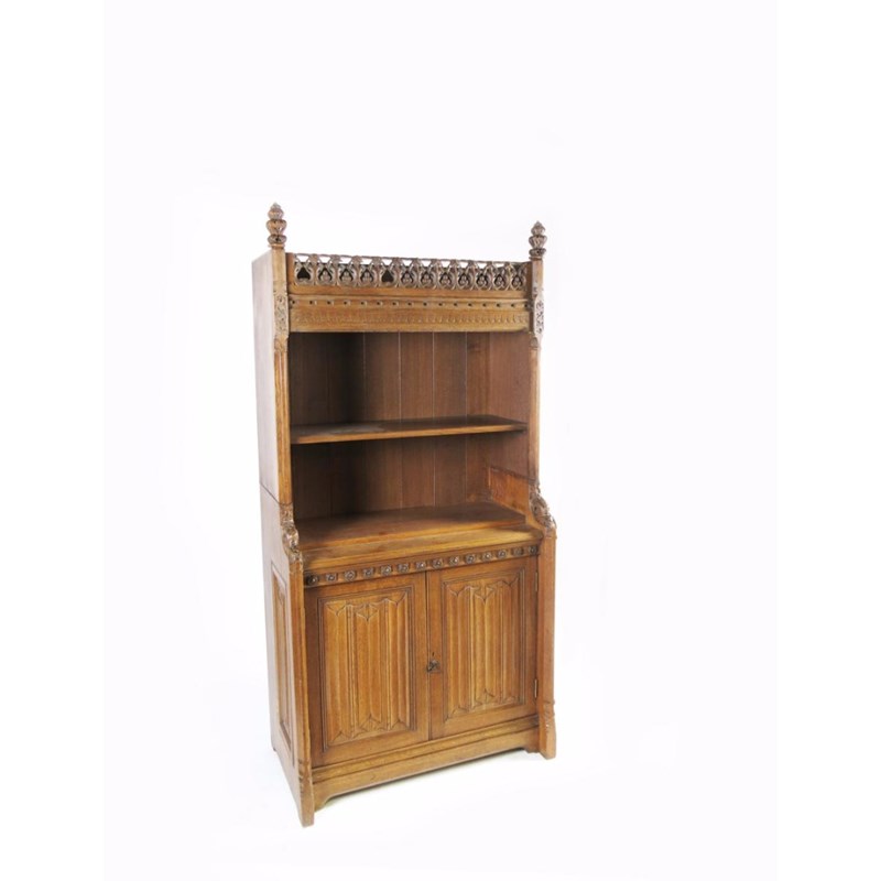A carved oak cabinet the design attributed to A.W.N. Pugin