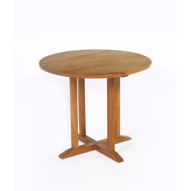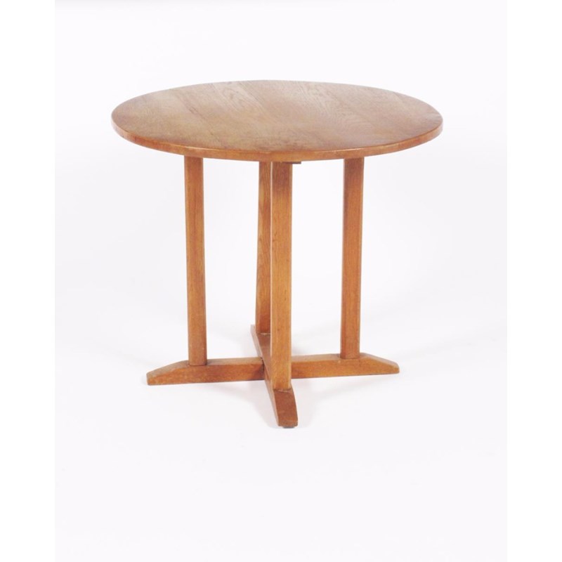 A Cotswold School occasional table, the circular section top on square section legs and sleigh feet 54.5cm. diam.