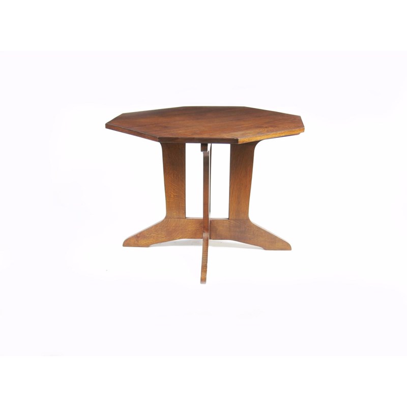 An oak octagonal table, with radiating legs, 72cm. high, 98cm. diam.
