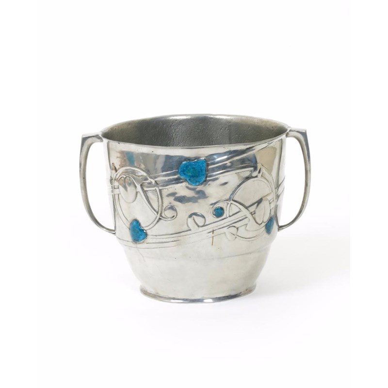 A Liberty & Co English Pewter and enamel champagne bucket designed by Archibald Knox