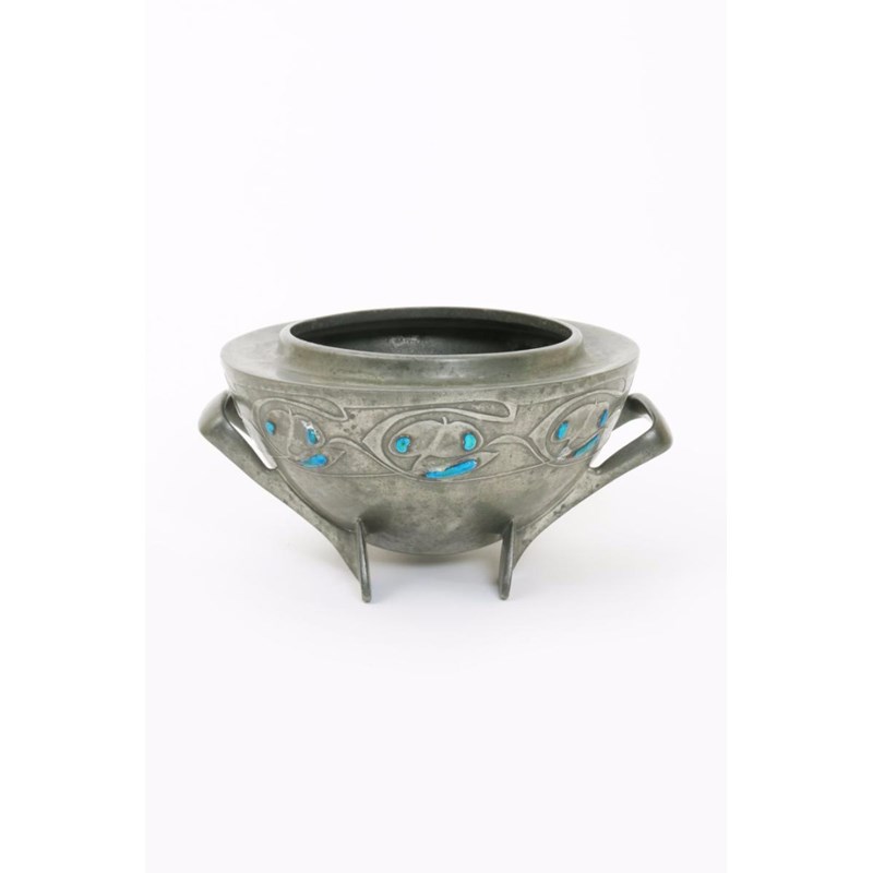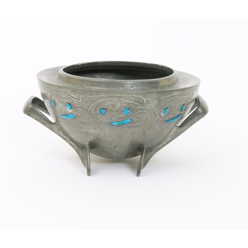 A Liberty & Co English Pewter and enamel rose bowl designed by Archibald Knox