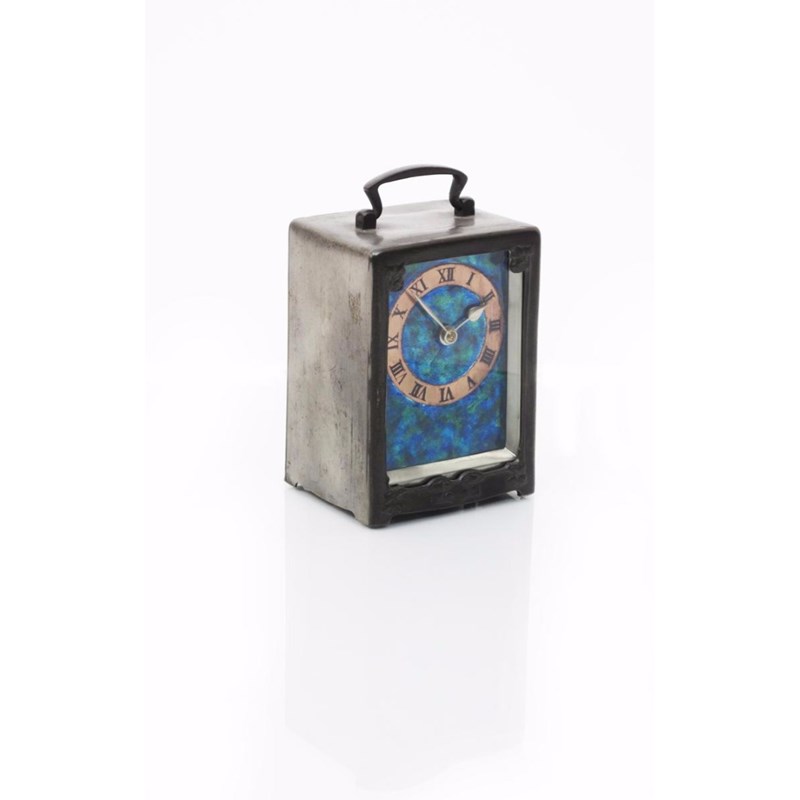 A Liberty & Co English Pewter clock designed by Archibald Knox