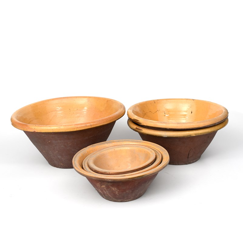 six large Soil Hill Pottery bowls, glazed to the interior mustard yellow