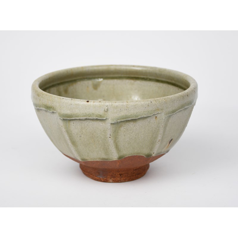 a cut-sided stoneware bowl, covered to the foot with an ash glaze,