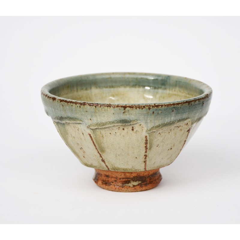 a cut sided stoneware bowl, covered to the foot with an ash glaze,