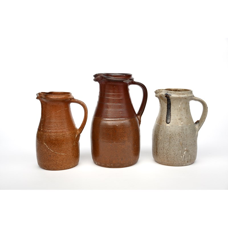 a salt-glaze stoneware jug, and two other stoneware jugs by Richard Batterham,