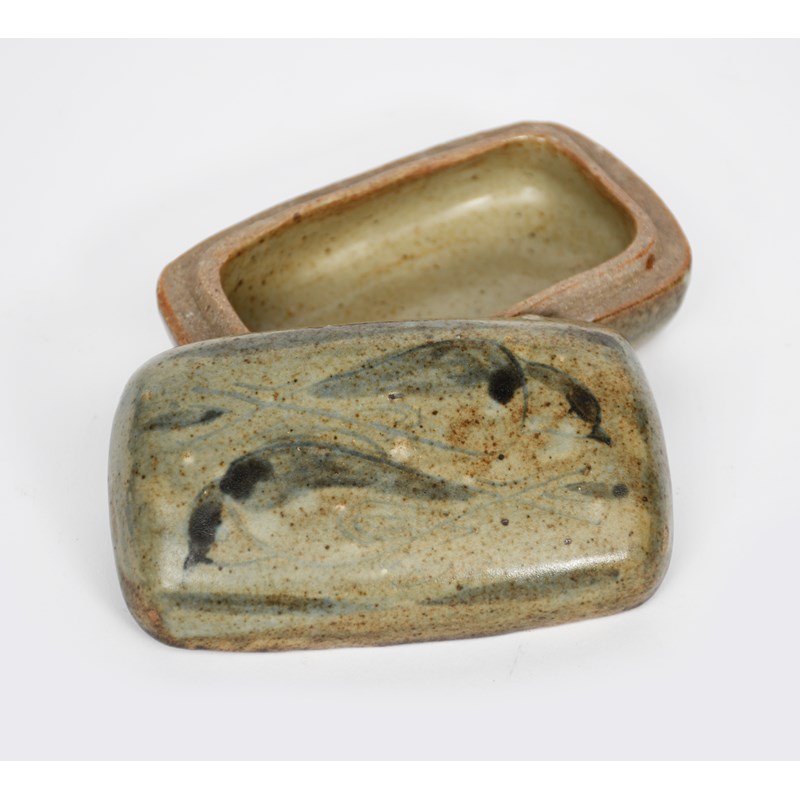 Bernard Leach Potter and Artist, Crafts Council, page 95 catalogue number 99 for a comparable porcelain box with the same decoration on the cover.