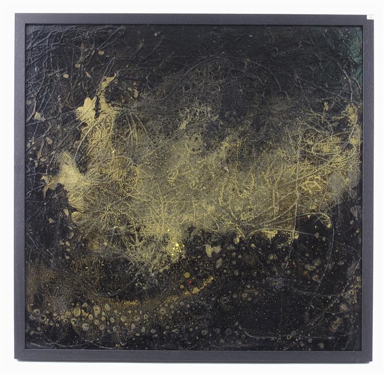 untitled, acrylic on board, framed dated to reverse, 1992, exhibition label 60 x 60cm.
